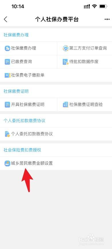进入个人社保缴用度平台页面,点击【城乡住民缴用度金额设置】