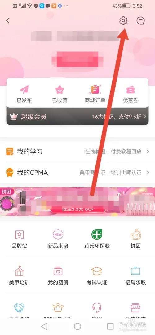 来到个人主页,点击顶部的设置图标。