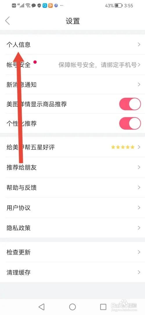 进入设置,点击【个人信息】。