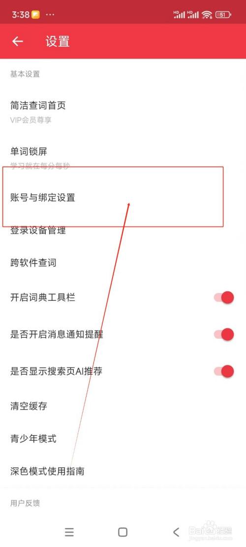 在设置界面中点击"账号与绑定设置"