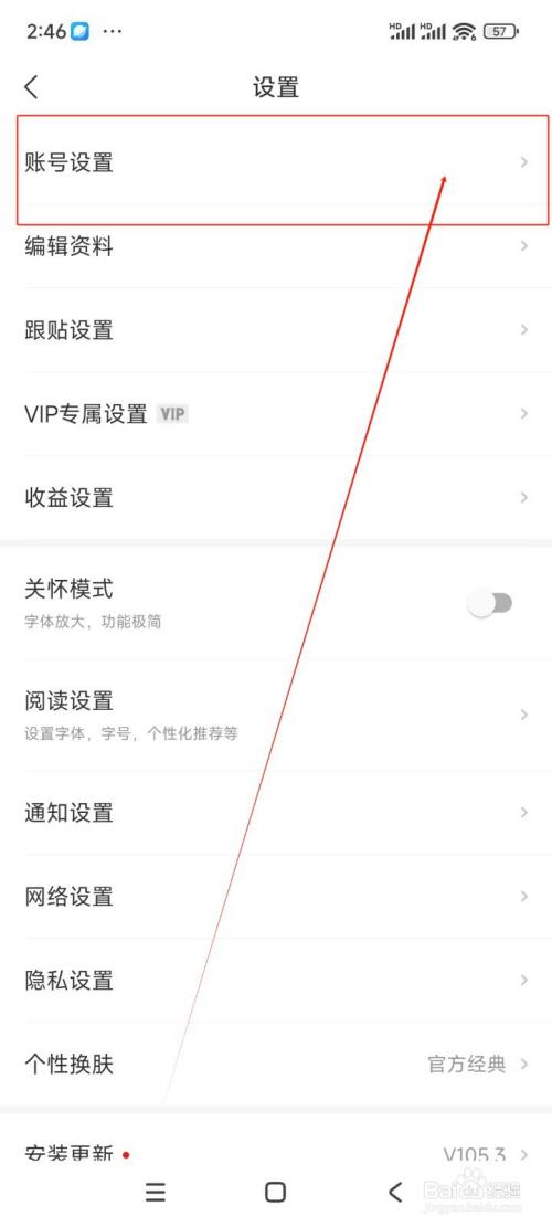 在设置界面中点击"账号设置"