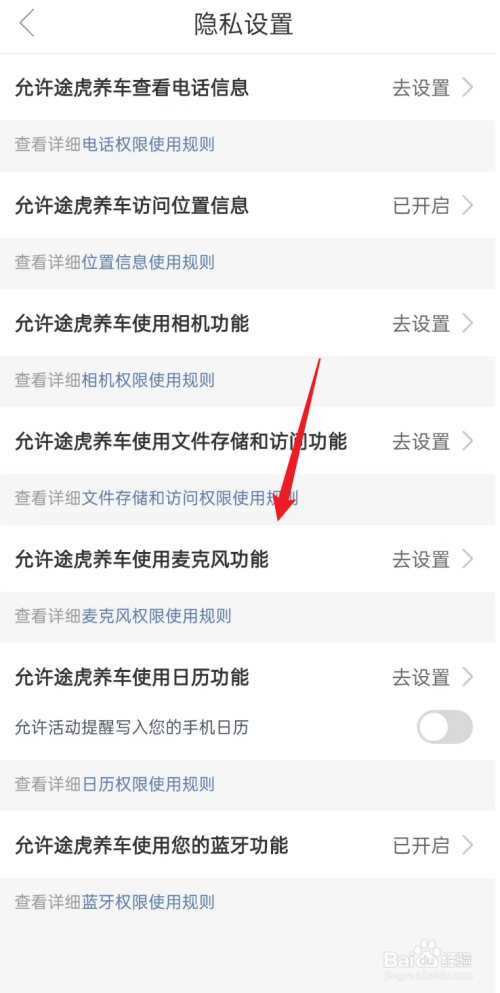 进入隐私设置菜单栏中,点击利用麦克风功效选项,点击进去。