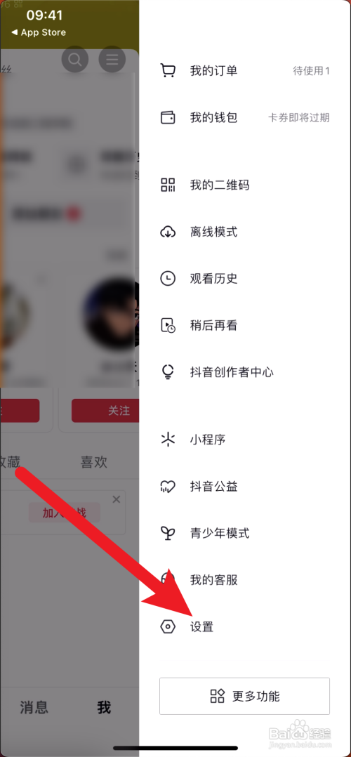 打开抖音我的界面,点击上面的菜单图标。