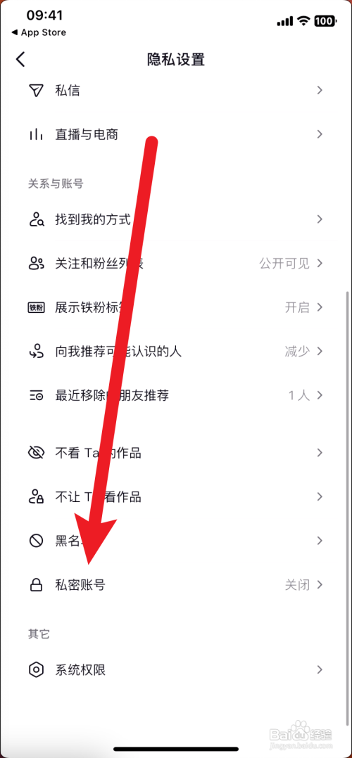 尔后,点击私密账号。