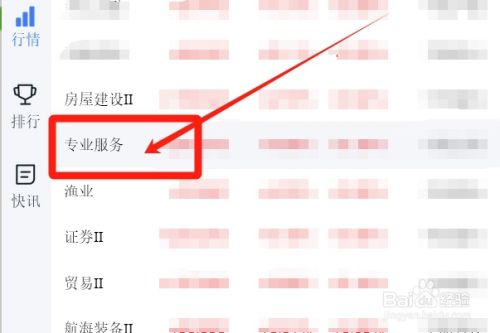 点击【专业办事】,如图。这样,我们就可以知道专业办事类股票的行情啦~