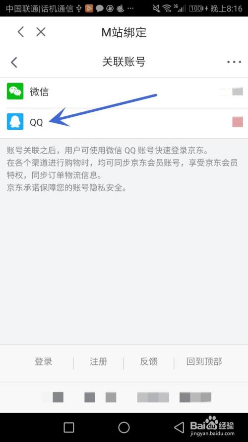 点击箭头指标的目的的"京东账号办理"选项