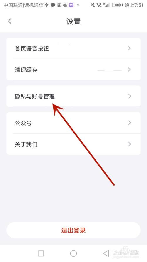 点击箭头指标的目的的"隐私与账号办理"选项