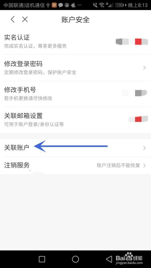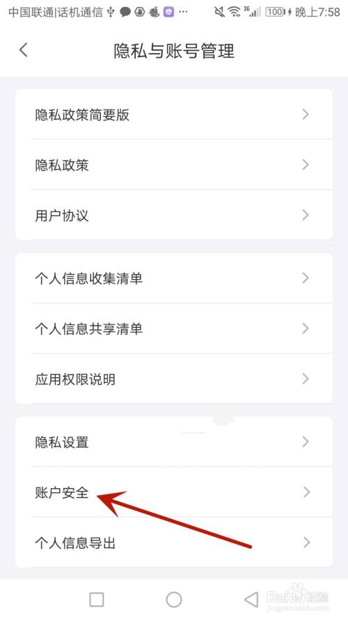 点击箭头指标的目的的"账户安全"选项