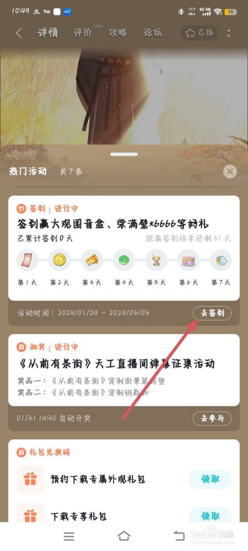 在签处处,点击右侧去签到。