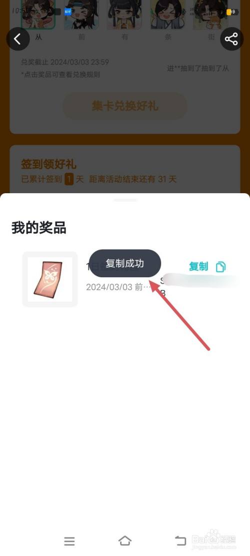 这样,即可乐成复制奖品兑换码。