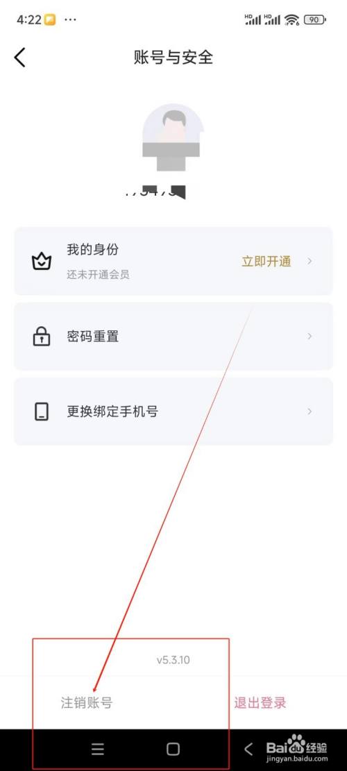在账号与安全界面中点击"刊出账号"