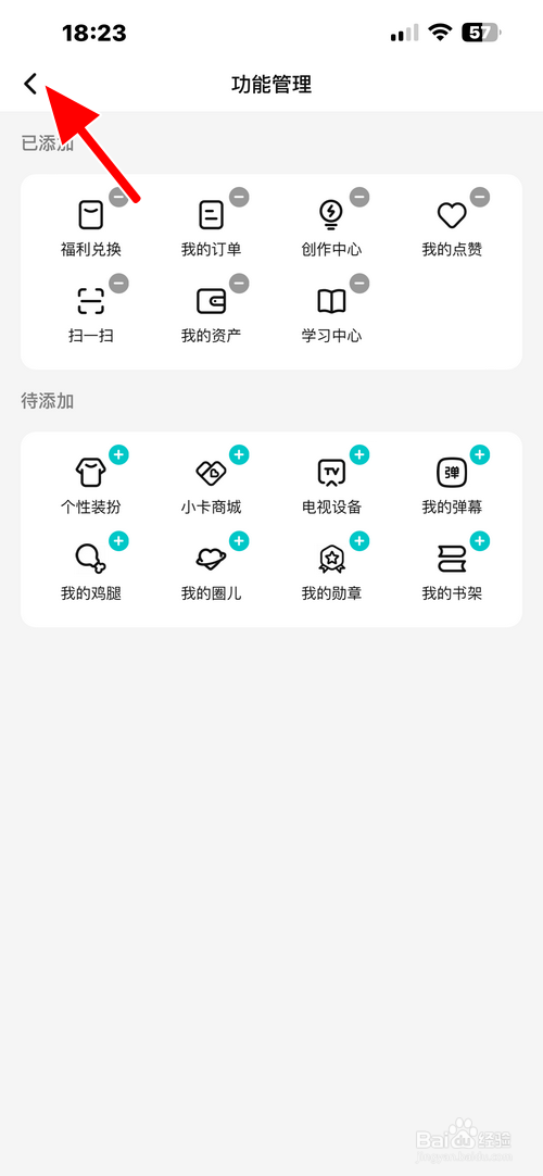 在"待添加"一栏下面,点击功效模块右上角的+号举行添加。