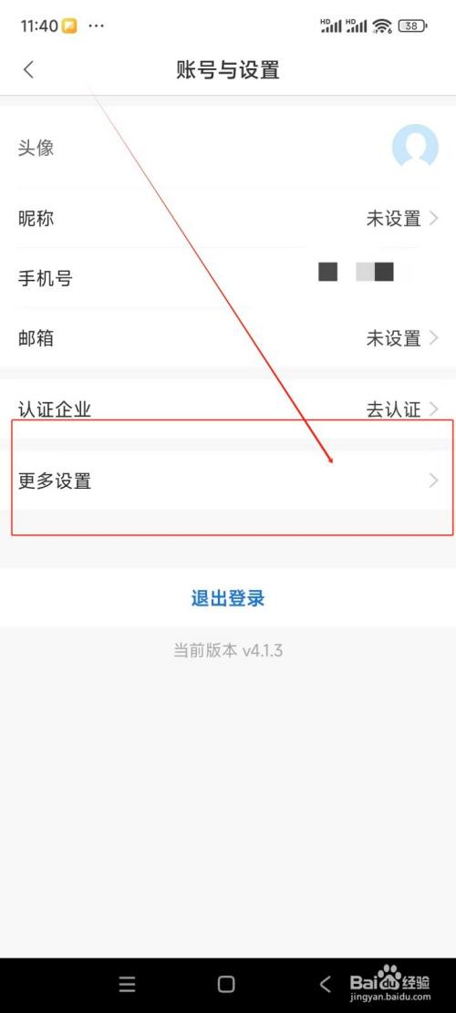 账号与设置界面中点击"更多设置"