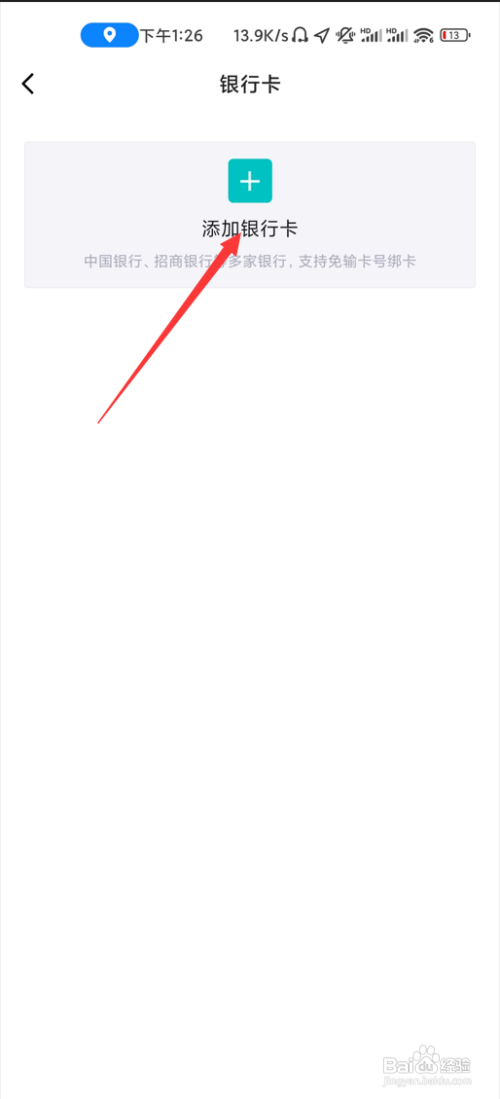 第三步,在银行卡页面点击添加银行卡