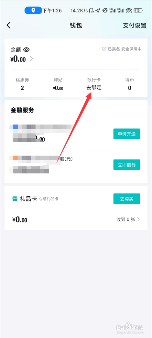 第二步,在钱包首页点击去绑定