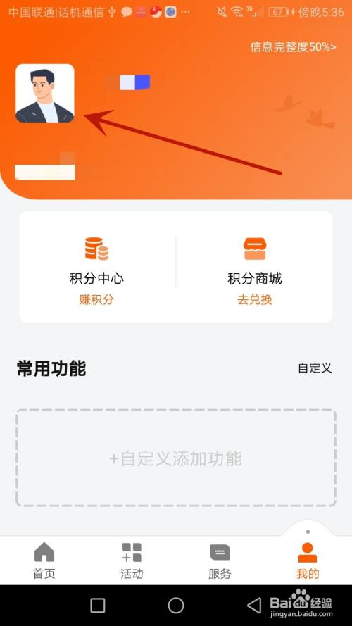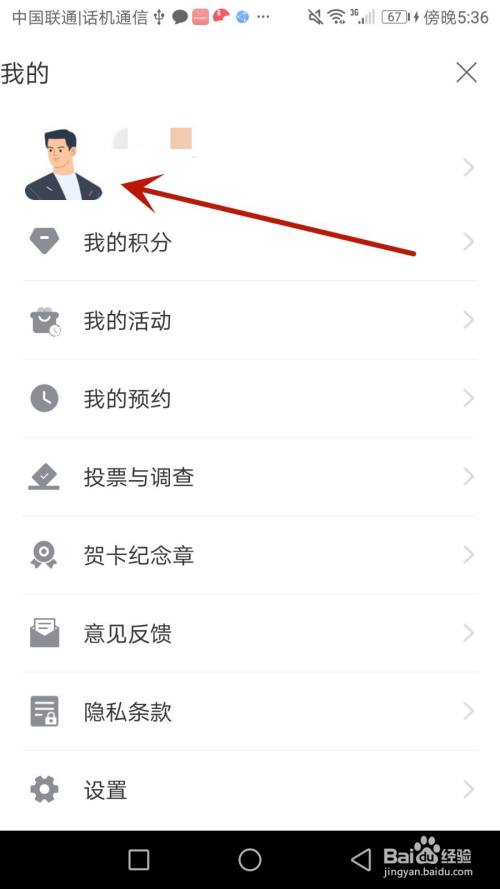 点击箭头指标的目的的"我的"选项