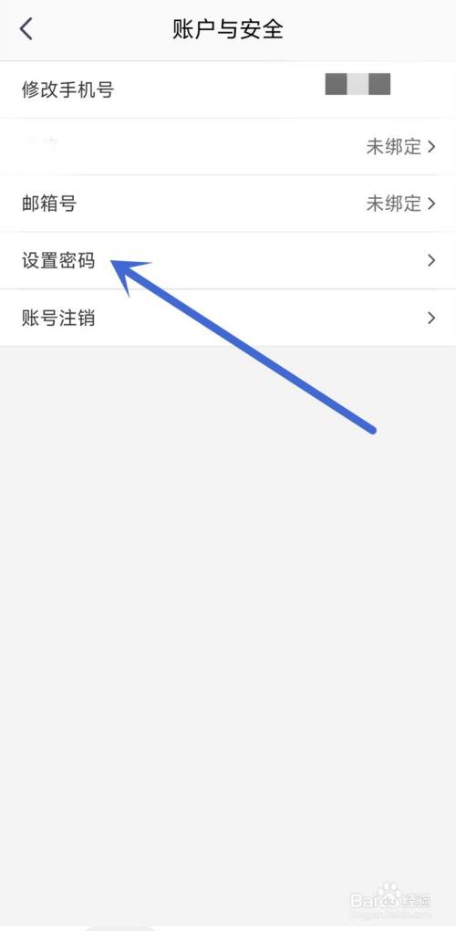 在账户与安全页面,点击设置密码,进入。