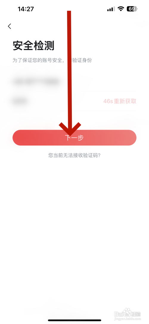 进入安全检测的界面输入短信验证码点击下一步按钮,