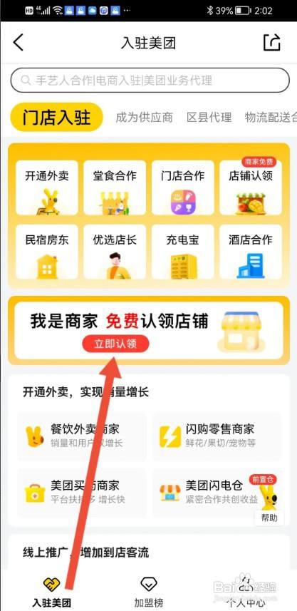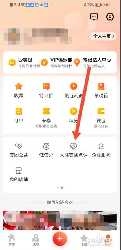 来到我的主页,点击【入驻美团点评】