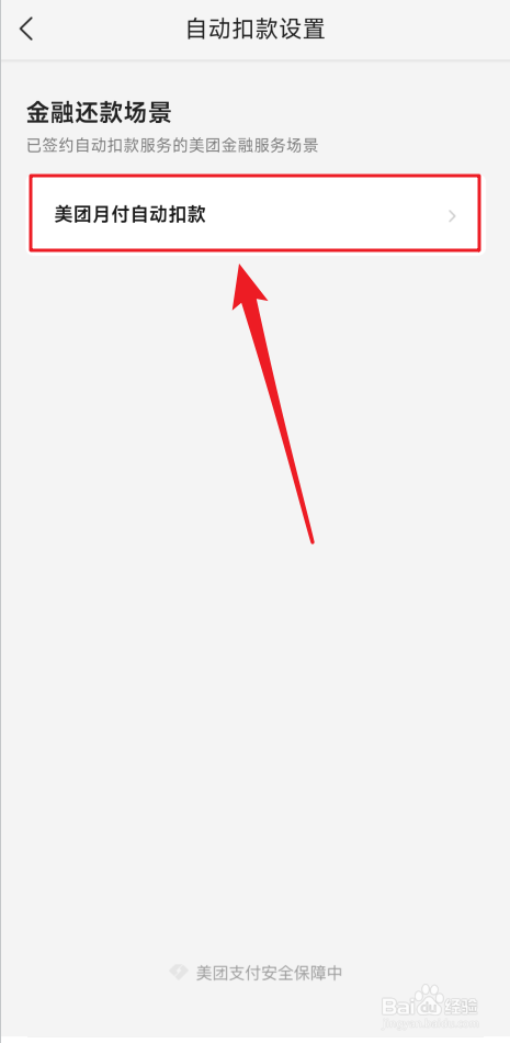 进入【美团月付主动扣条目】页面,即可设置主动扣条目方式。
