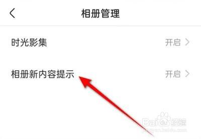 在相册办理页面里有一个"相册新内容提醒",在上面点击。