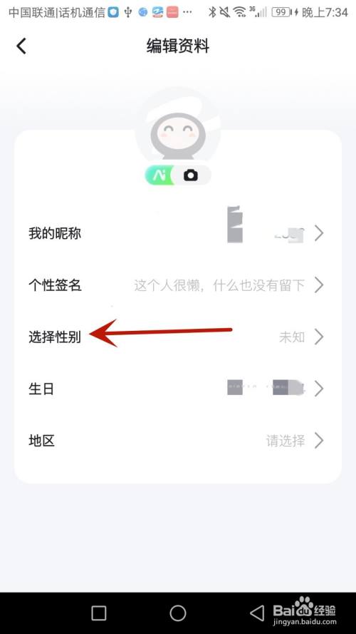 点击箭头指标的目的的"选择性别"选项