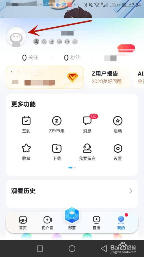 点击箭头指标的目的的"我的"选项