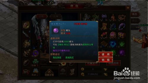 转生以后我们就可以利用转生修为丹,来进级我们的转生等级,转生等级越高,我们就可以利用更好的装备了,如图