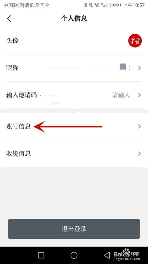 点击箭头指标的目的的"账号信息"选项
