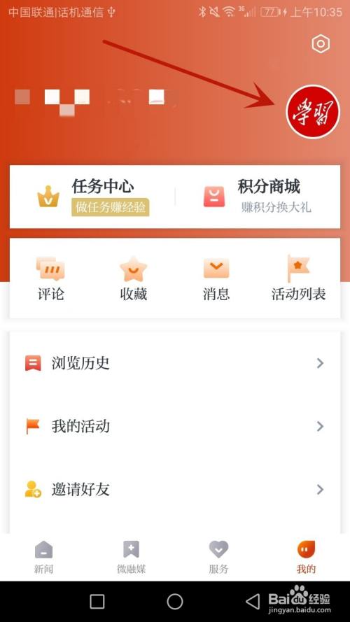 点击箭头指标的目的的"我的"选项