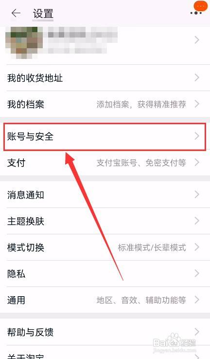 点击"账号与安全"。
