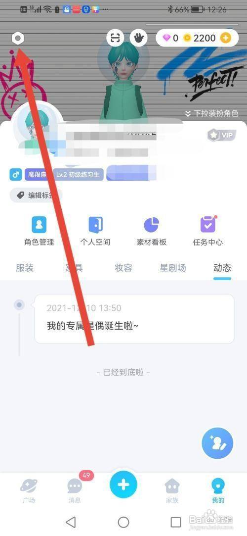 来到我的主页,点击左上角的设置图标。