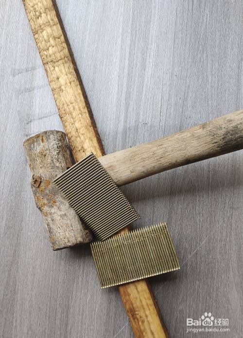 筹办好木条、钉子和锤子。用排钢钉建造挂件,木条是主体,锤子用于钉钉子。