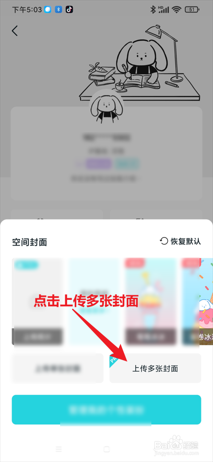 点击个人空间中的"装扮空间"进入空间封面;
