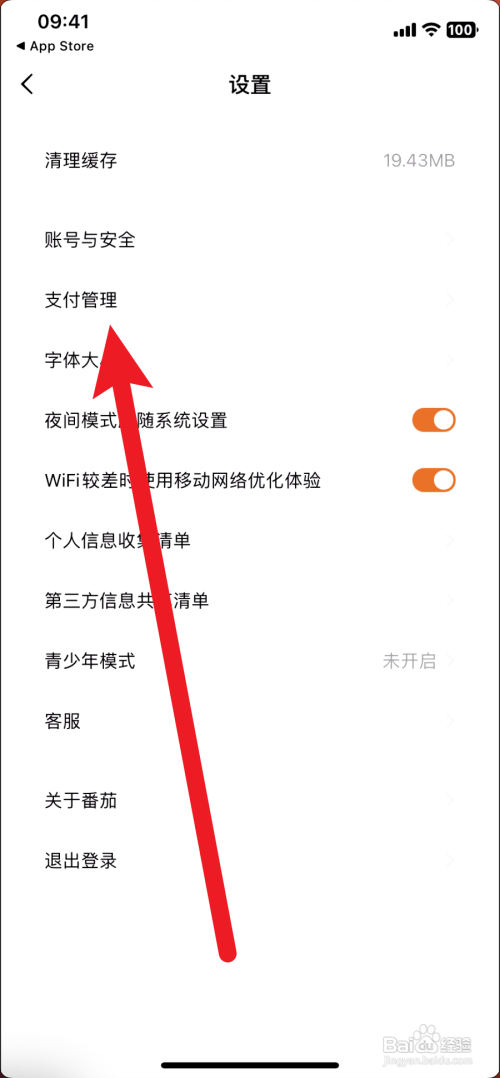 接着在设置界面, 点击支付办理。