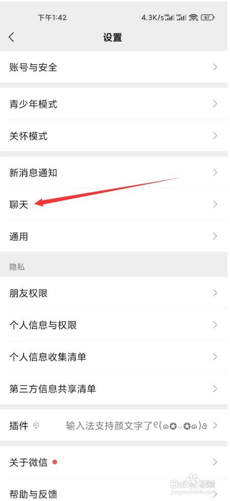 第二步,在设置页面中,点击谈天选项。