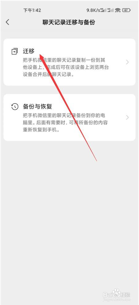 第四步,在谈天记载迁徙与备份页面中,点击迁徙按钮。