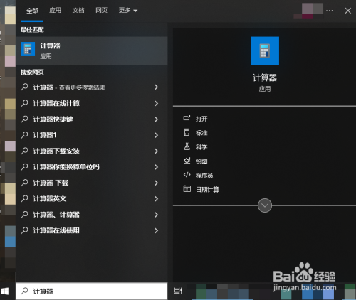 使命栏的搜刮栏中直接搜刮"计较器"