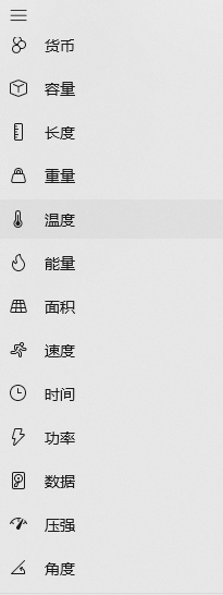 计较器主界面左上角选择导航,首要区分两大类:计较器、转换器