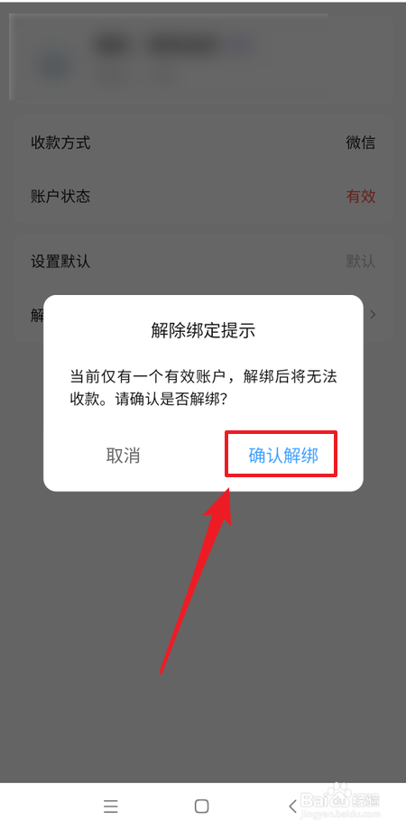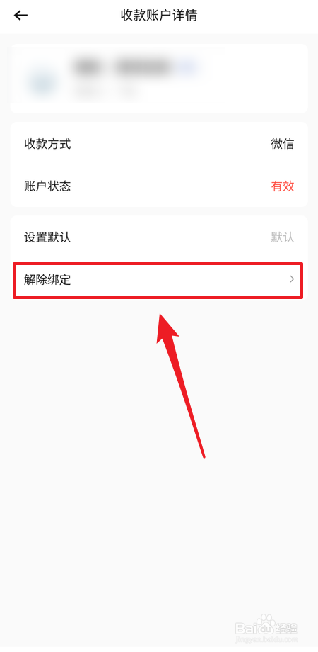 进入【收条目账户详情】页面,点击【排除绑定】按钮。
