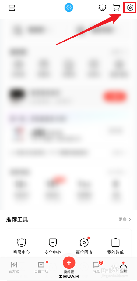 进入转转【我的】页面,点击【设置】按钮。