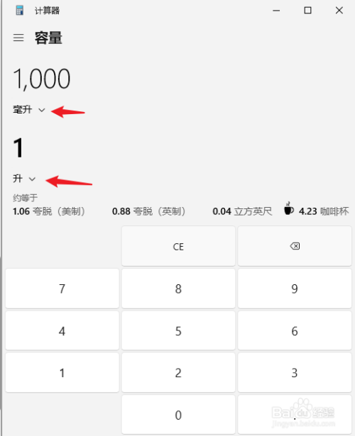 1升 ≈ 1.06夸脱(美制) ≈ 0.88夸脱(英制) ≈ 0.04立方英尺 ≈ 4.23咖啡杯