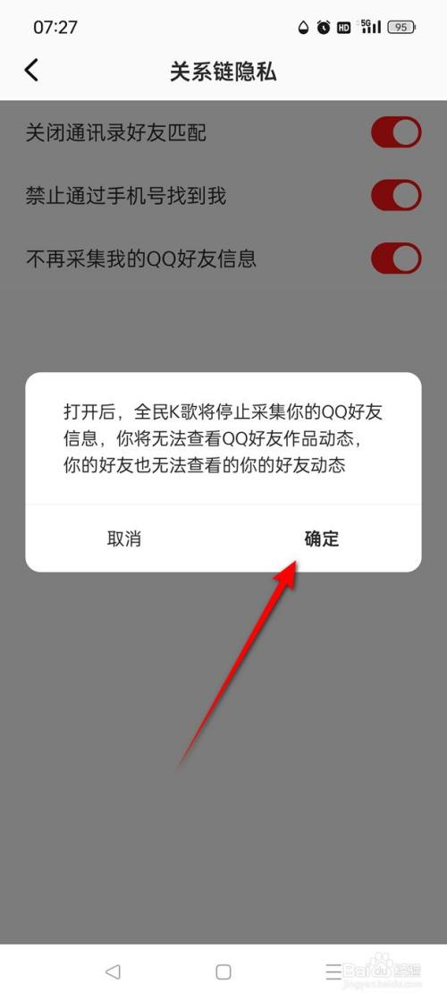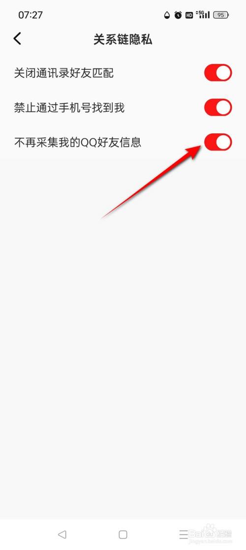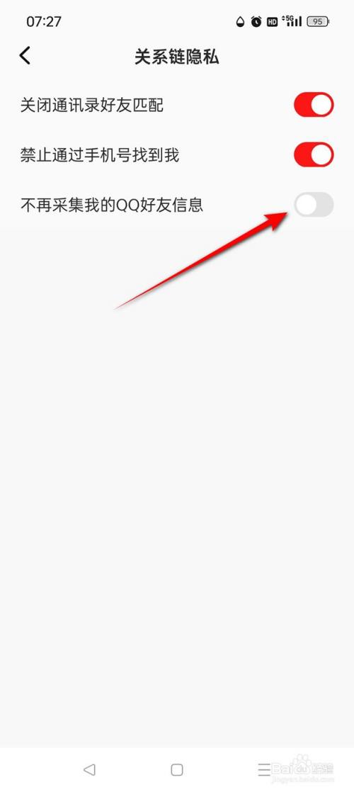 点击"不再收罗我的QQ摰友信息"旁处于点暗状况的小滑块。