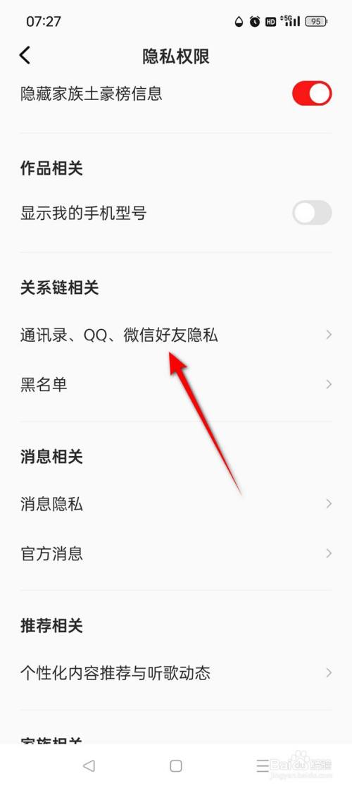 点击"通信录、QQ、微信摰友隐私"。