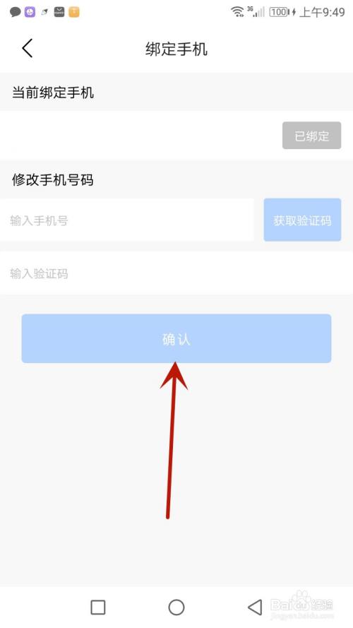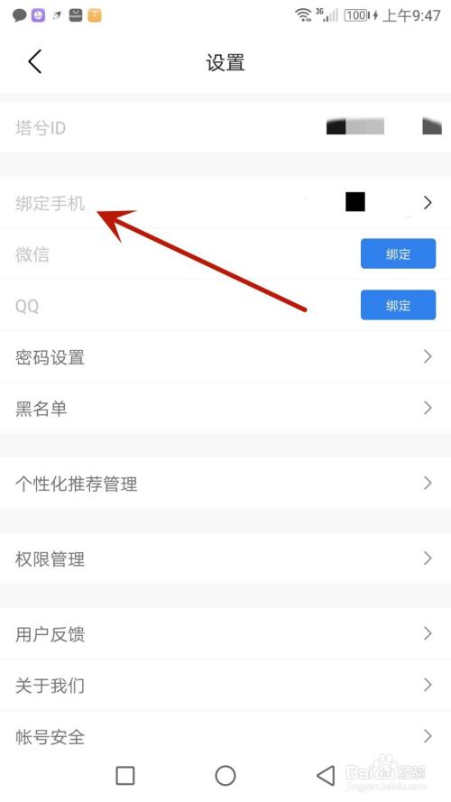 点击箭头指标的目的的"绑定手机"选项