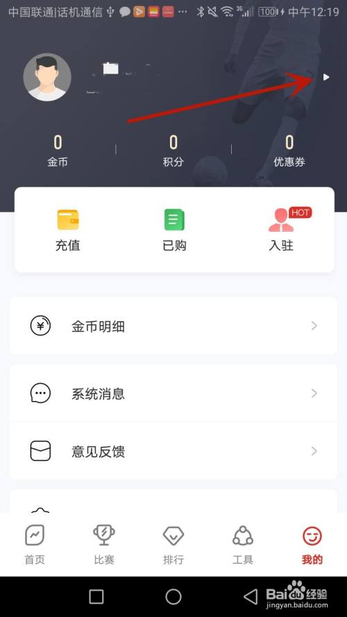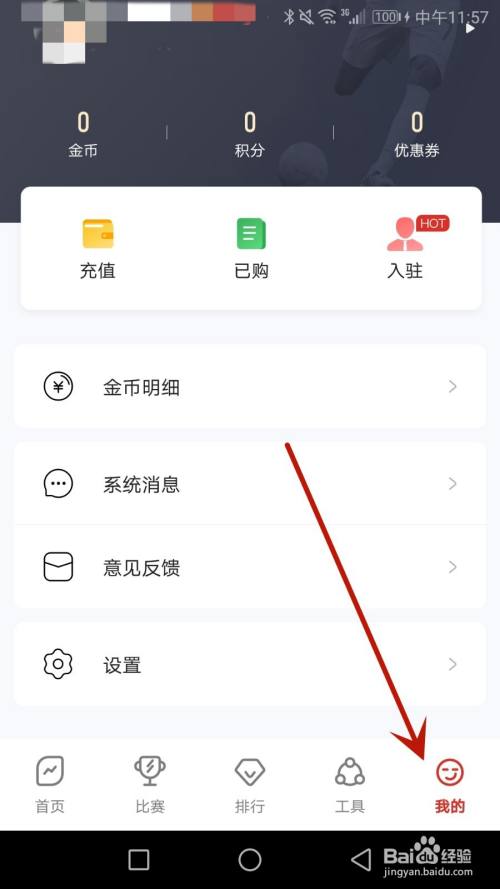 点击箭头指标的目的的"我的"选项