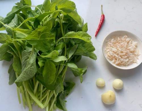 - 1筹办一把苋菜摘去老的根部,洗净切长条梗、叶分隔放,三个独头蒜(独头蒜喷鼻一点)切末,一个辣椒️切小段,一把小虾拒叮召米备用