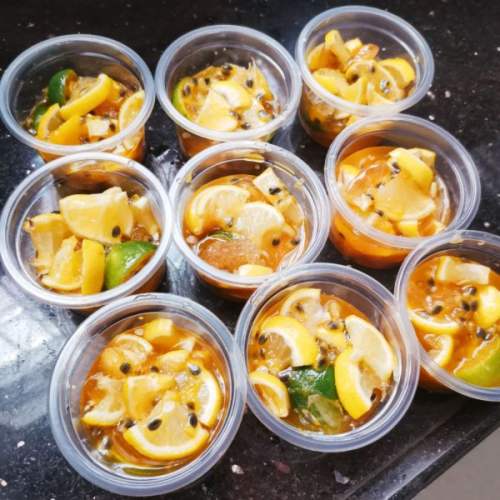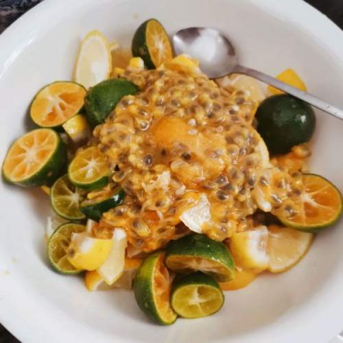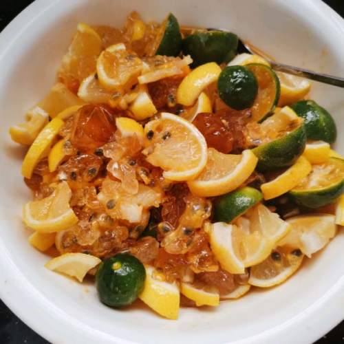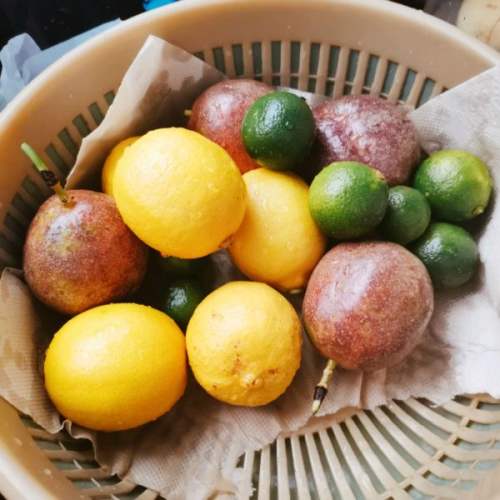 - 11、把柠檬、青柠、百喷鼻果洗洁净,晾干,备用。