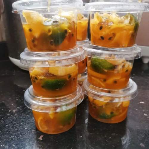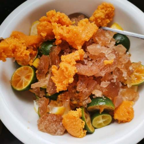 - 77、等冰糖融化,分装小盒子,放急冻,想喝随时拿出来泡着喝,可以加雪碧,可以加益力多,可以直接泡水,太方便了。