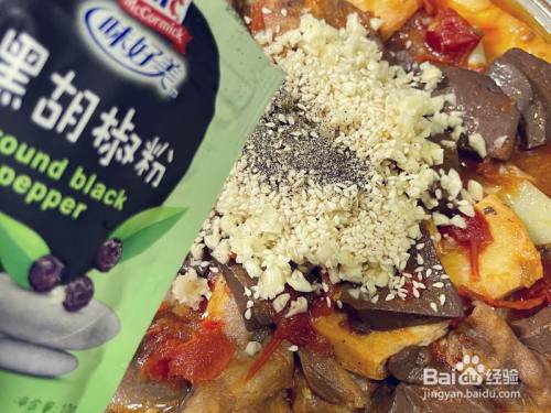铺上蒜泥,白芝麻,黑胡椒粉